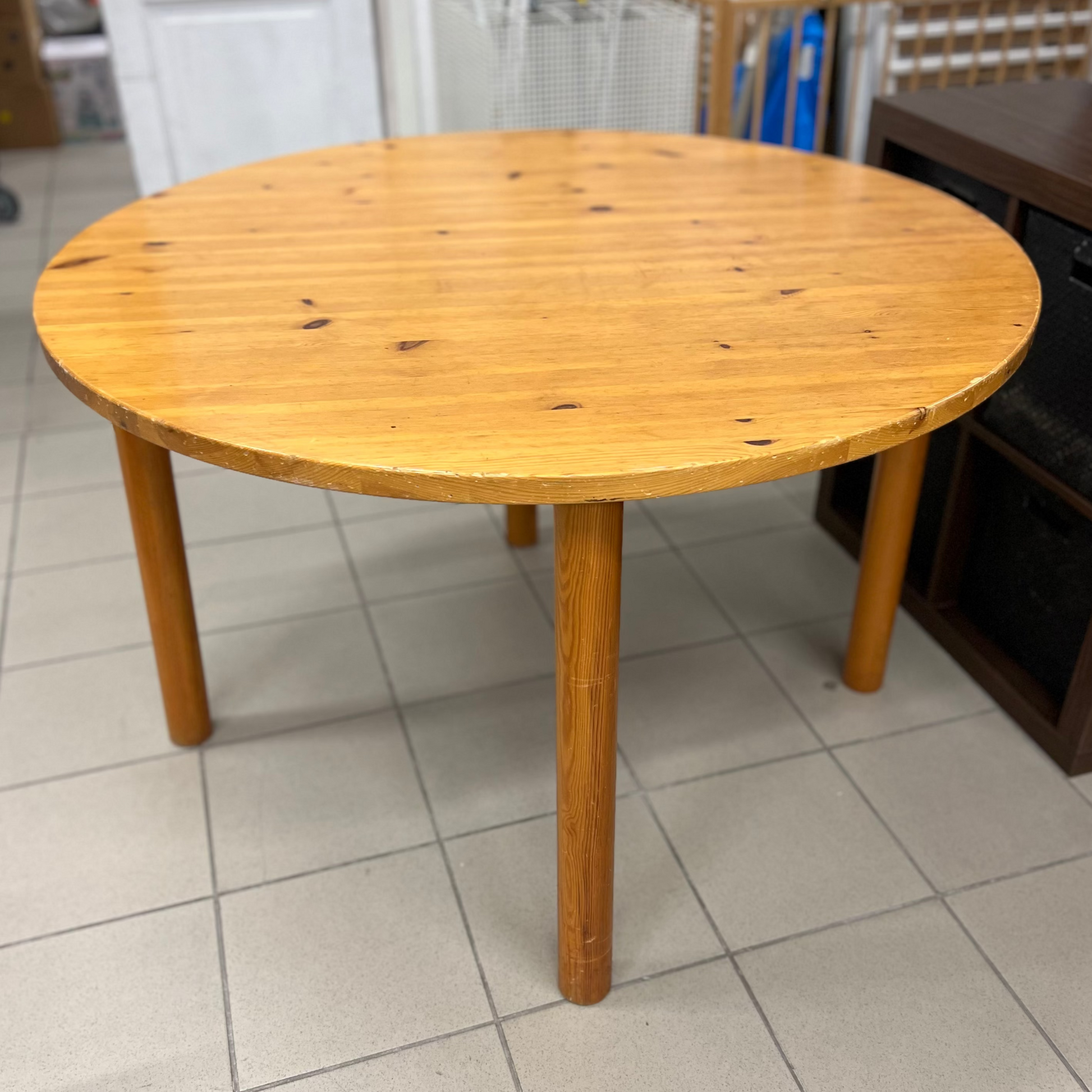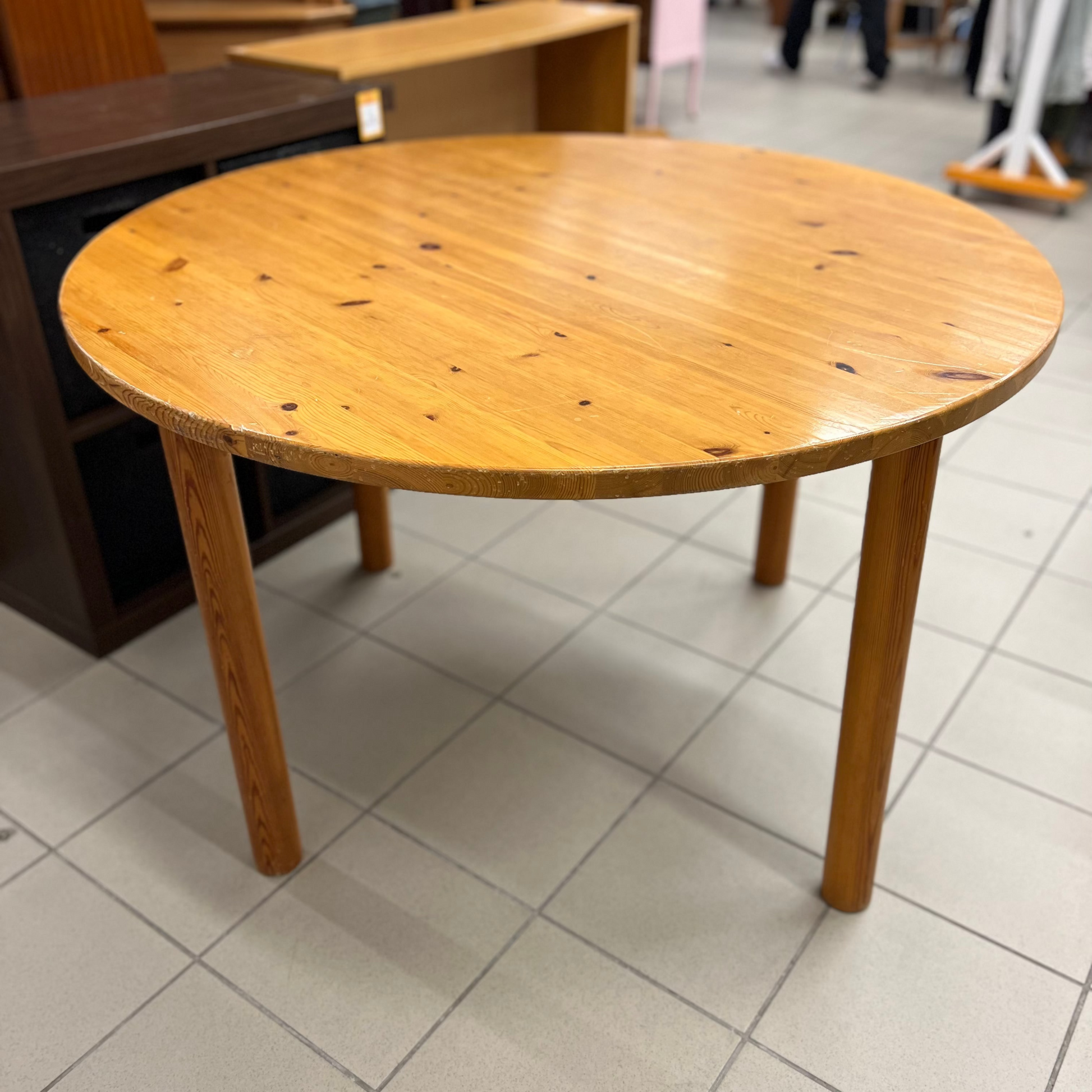 Šviesaus medžio praktiškas apvalus stalas. Jaukus ir stilingas pasirinkimas virtuvei, valgomajam ar terasai. Natūralus dizainas, kuris lengvai derės bet kokiame interjere.