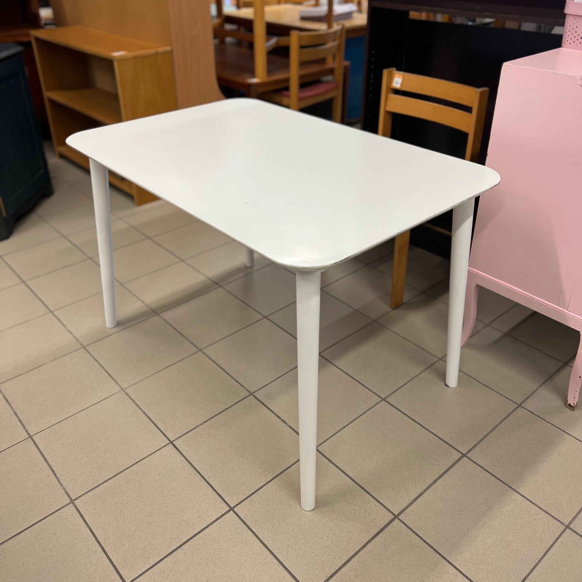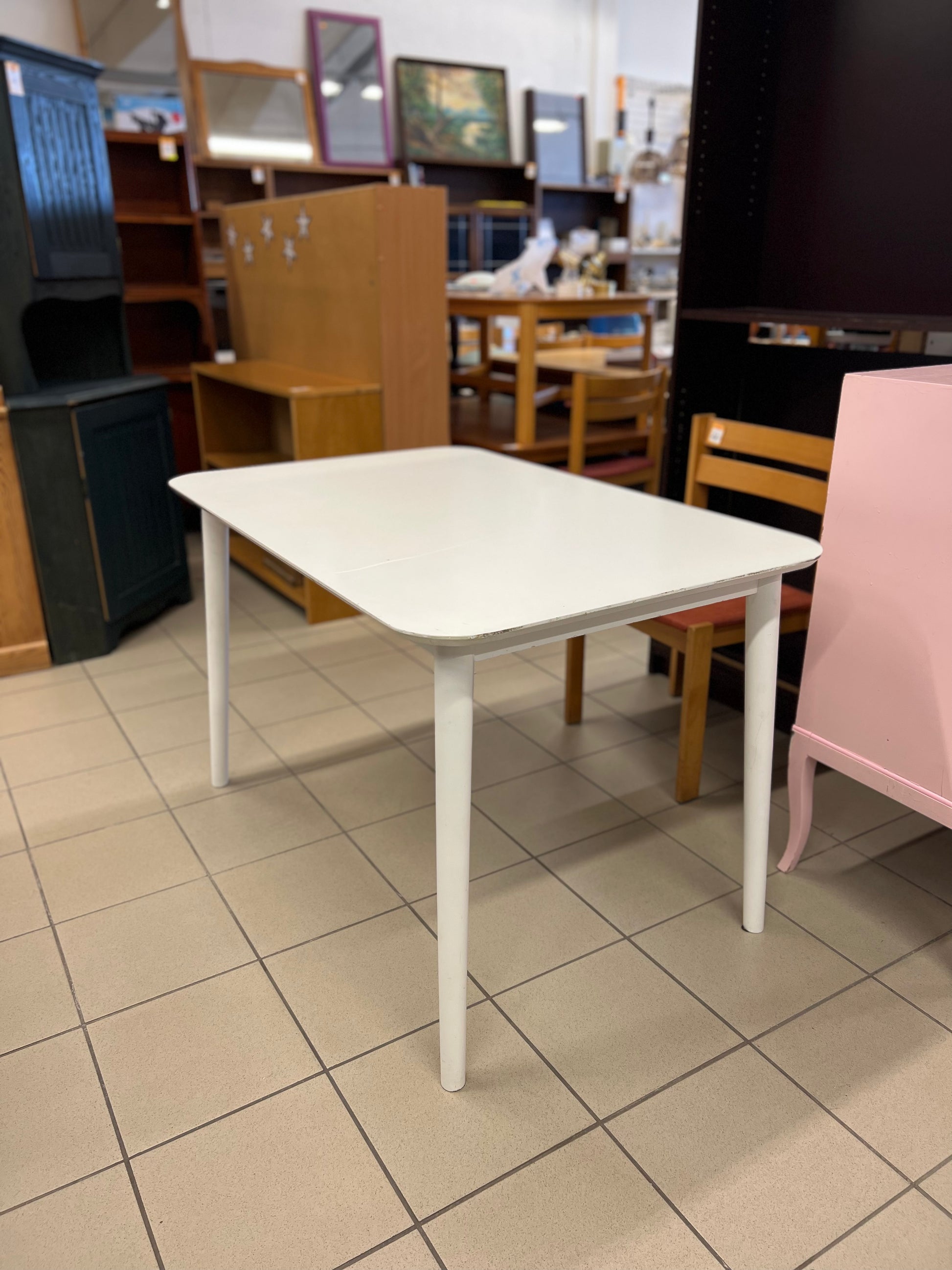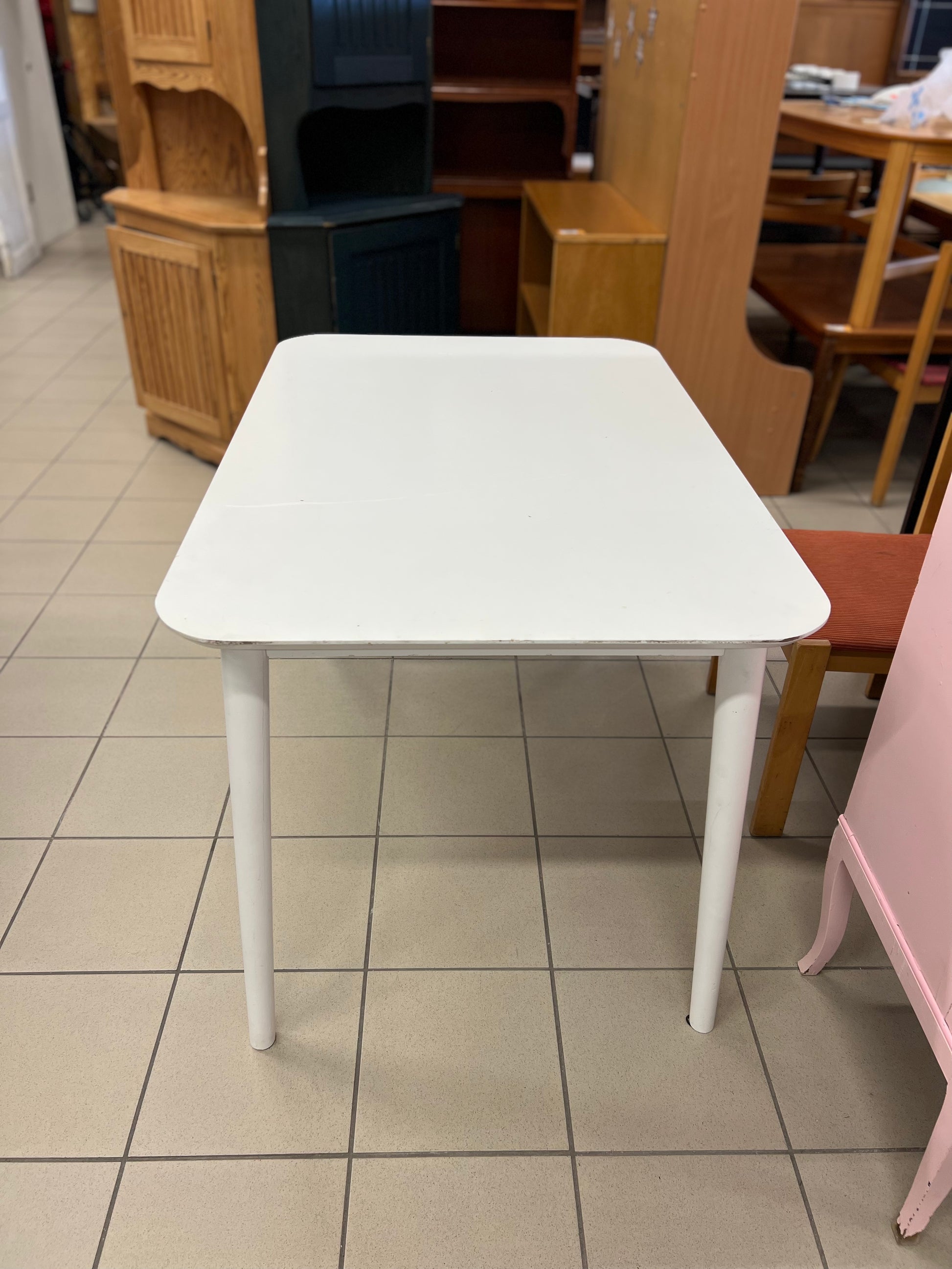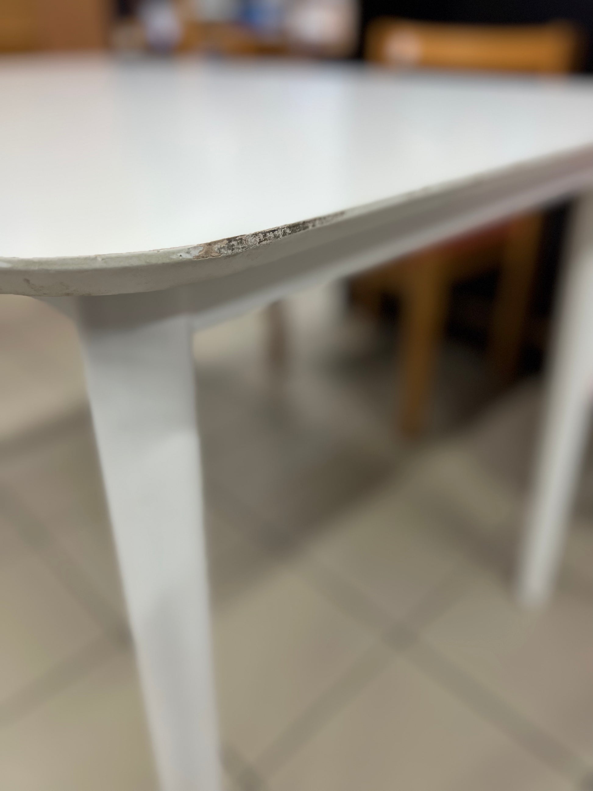 Baltas klasikinio stiliaus dažytas medinis stalas tinkamas svetainei ar virtuvei.