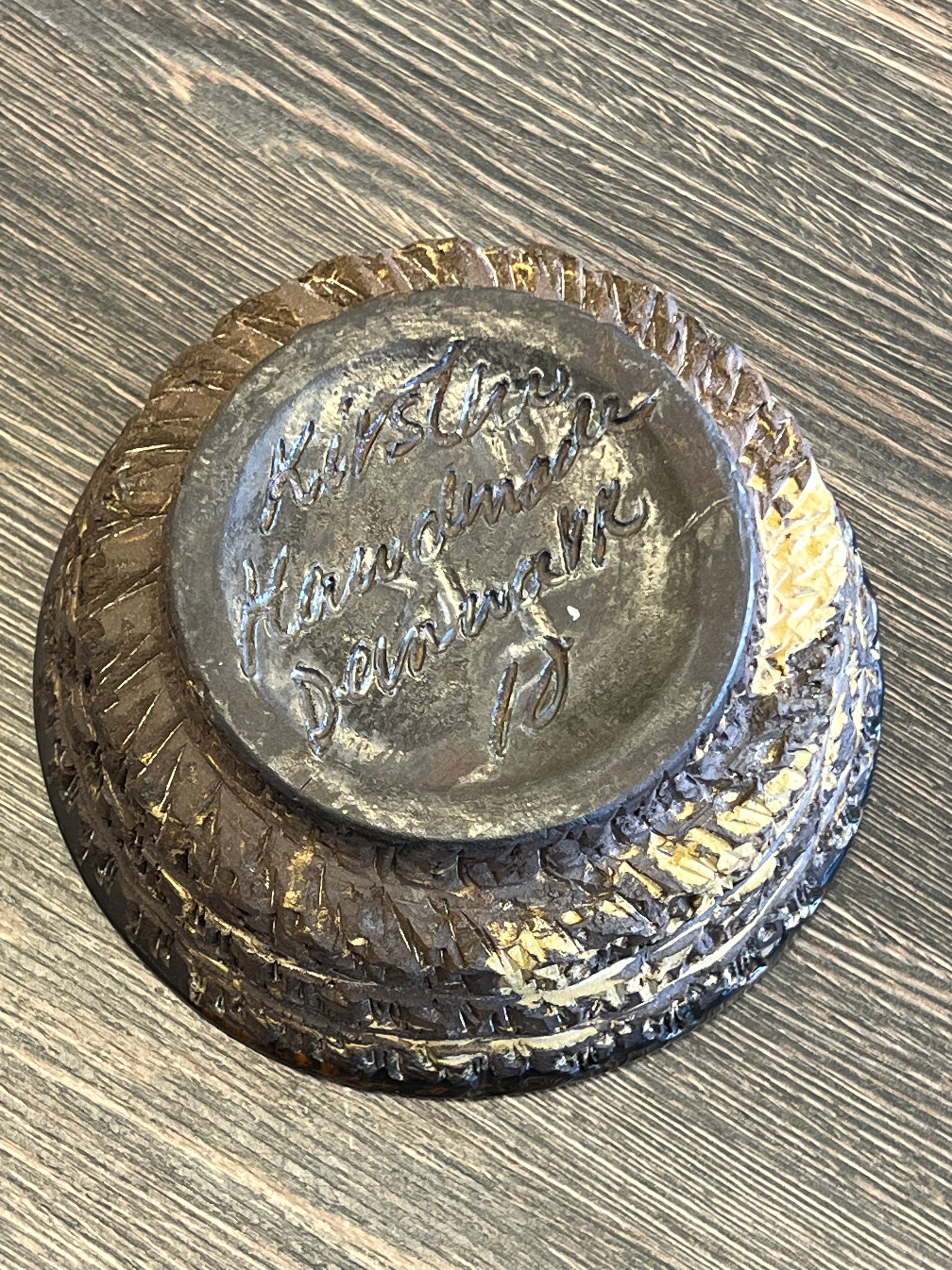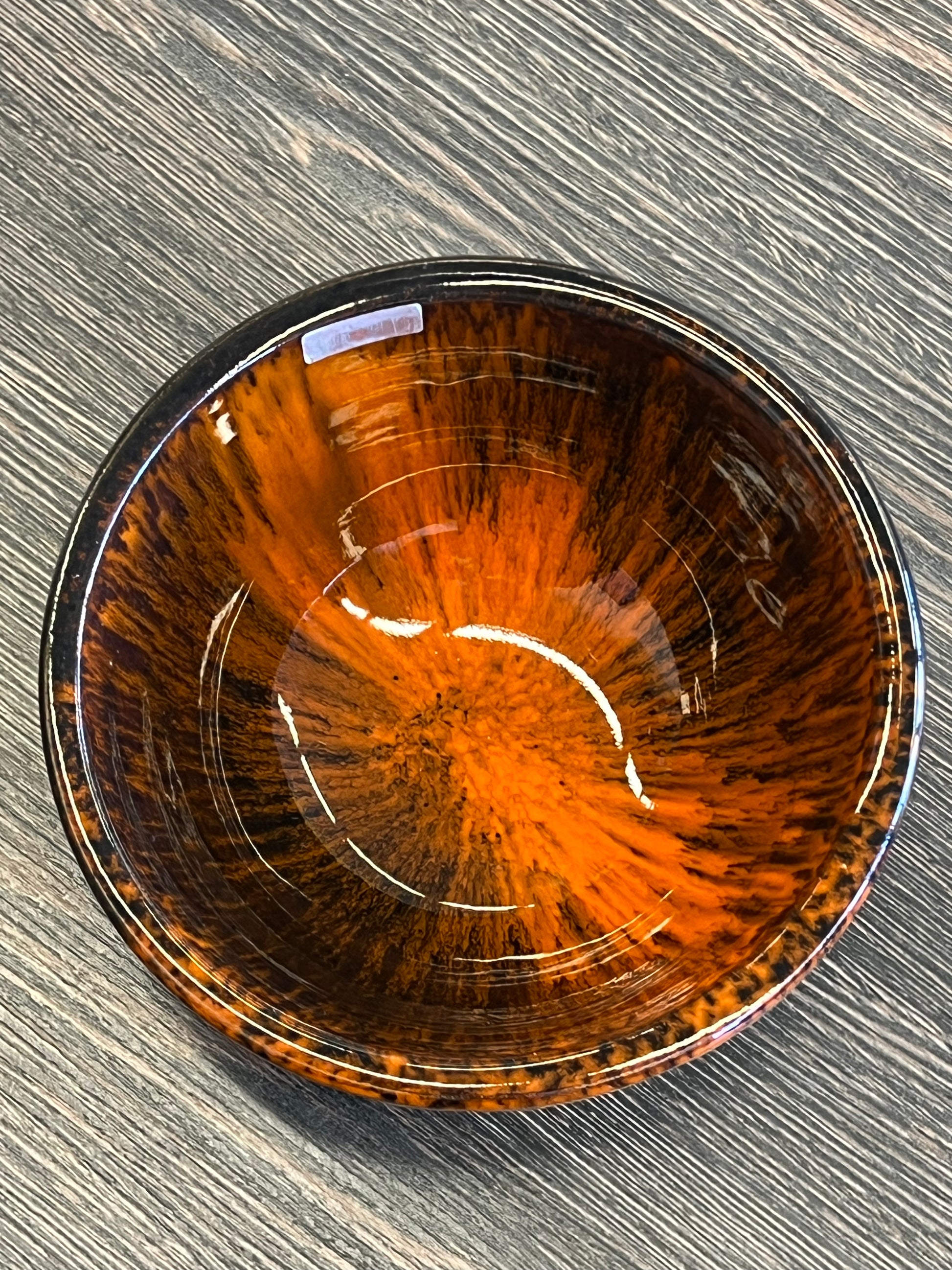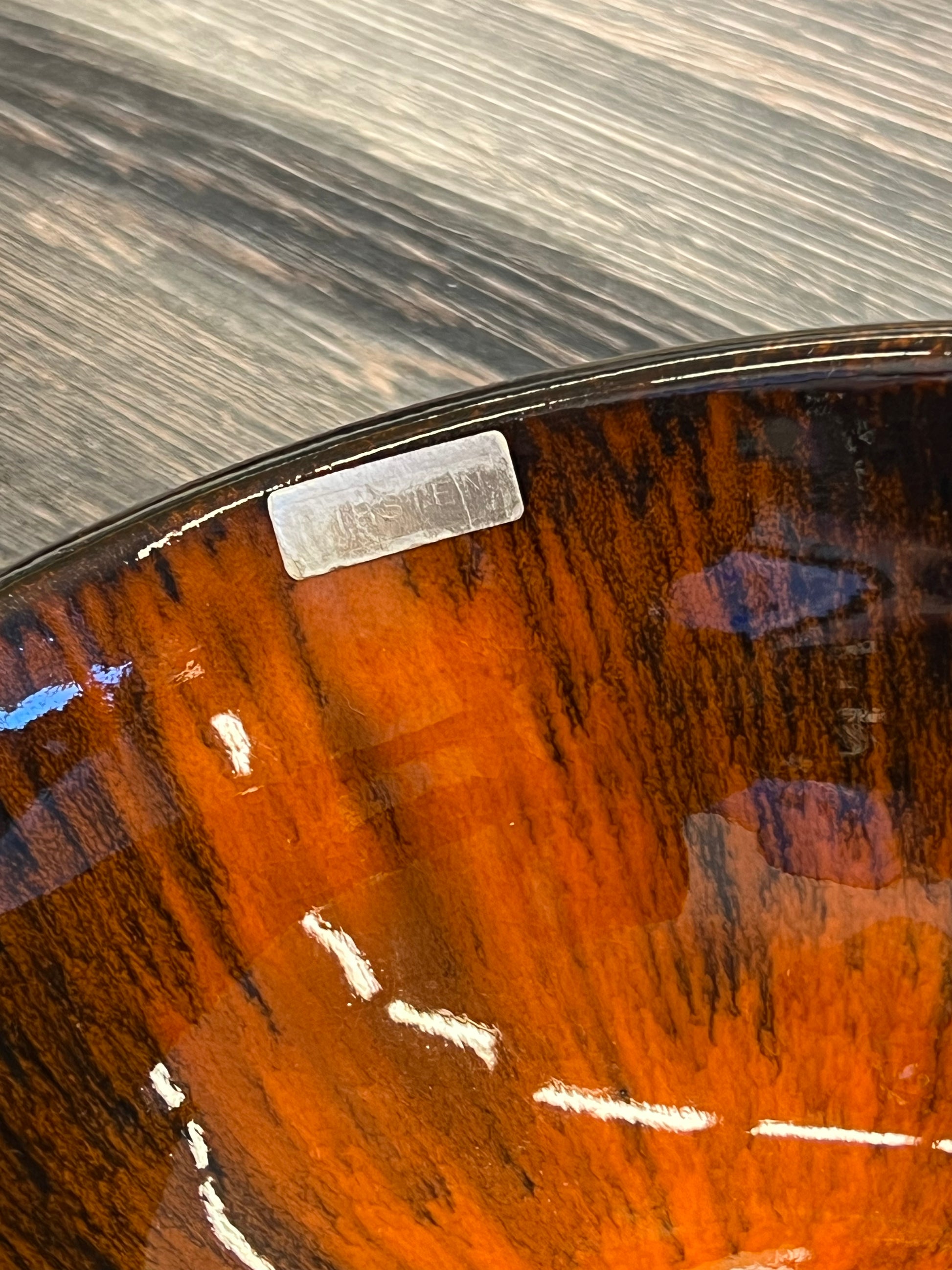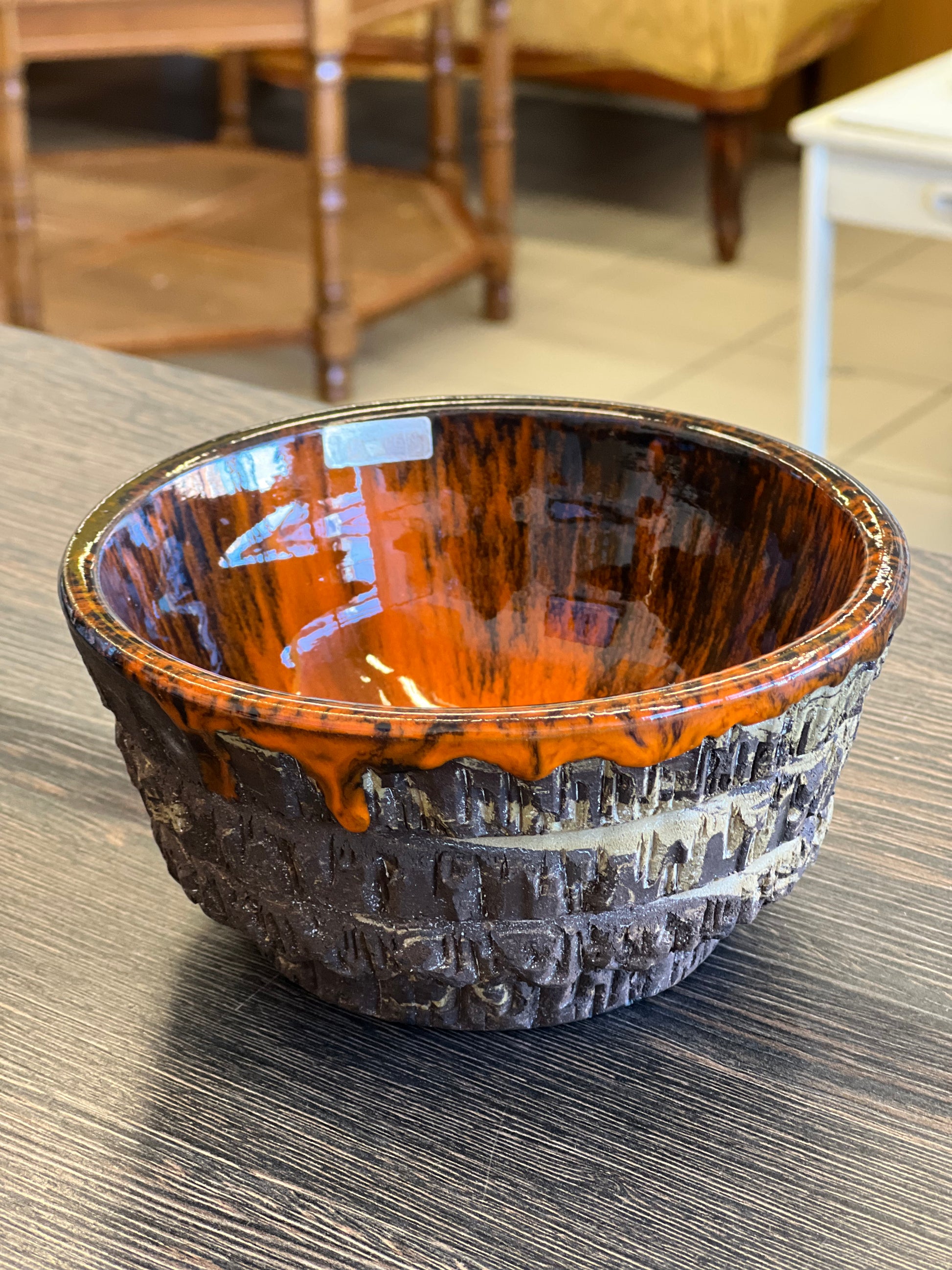 Puošni, blizgi, ryškiai oranžinės spalvos glazūra viduje puikiai kontrastuoja su grubia tekstūra išorėje. Išskirtinė dubenėlio forma ir glazūra - šiurkštus ir tvirtas išorėje, bet švelnus ir trapus viduje. Žemiškų spalvų, viduje lygia, ryškiai oranžine spalva glazūruotas dubuo, primena besiveržiančią lavą. Gal šis dubuo puiki dovana jūsų artimam žmogui, apie kurį pagalvojus, iškyla žodžiai: "Išore paprastas, o vidumi ypatingai turtingas ir spalvingas." Gal tai žmogus, kurio aistra kolekcionuoti? Gal tai žmogus ypač vertinantis meną? Gal tas žmogus tai jūs?
