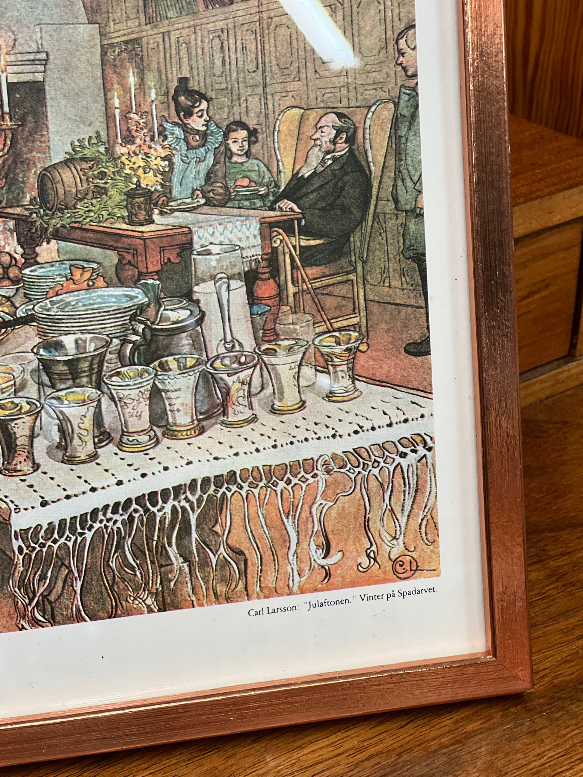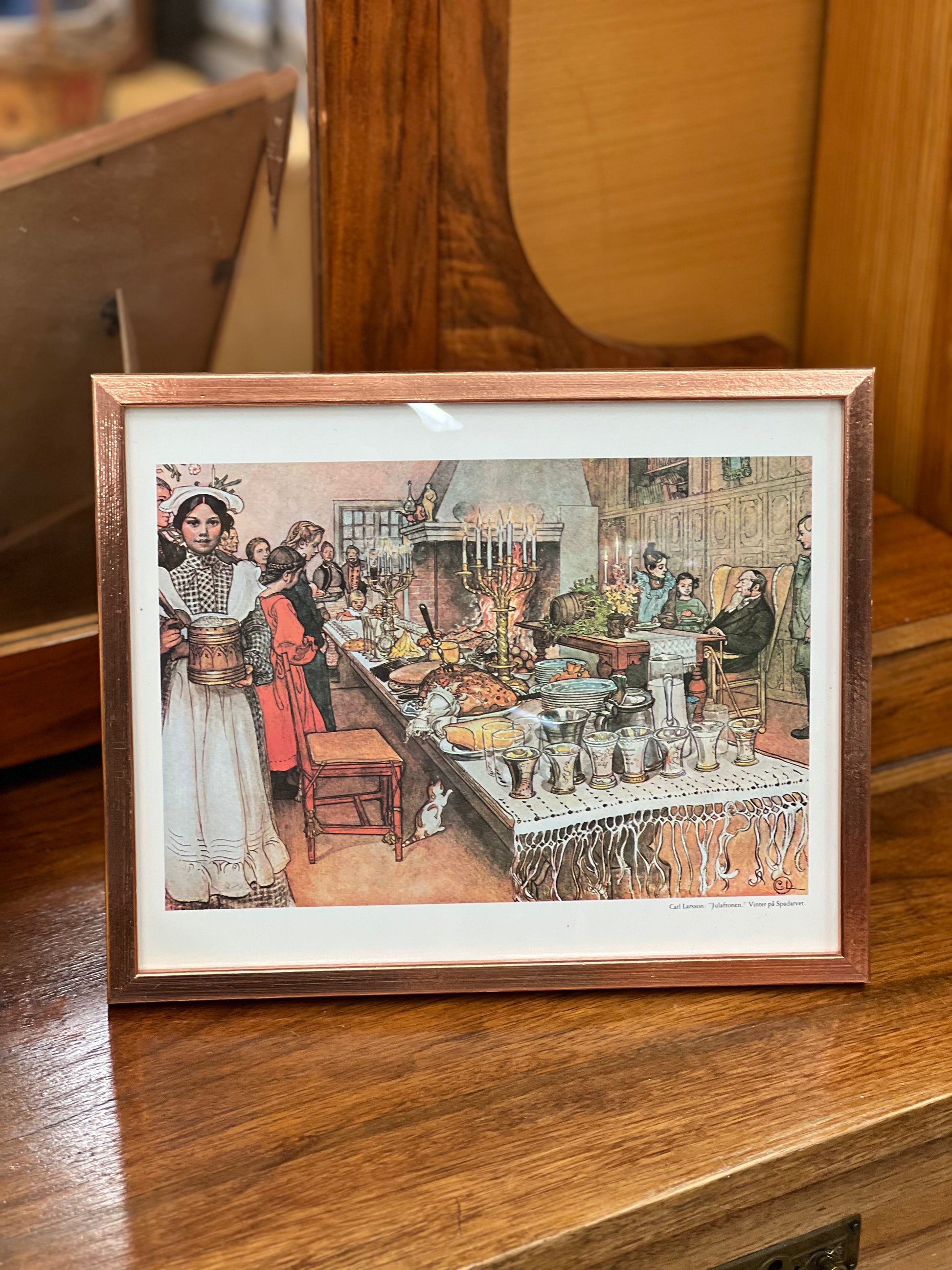 Švedų menininko Carl Larsson, spaudinys mediniu rėmėliu "Kalėdų išvakarės" 1904 m.
