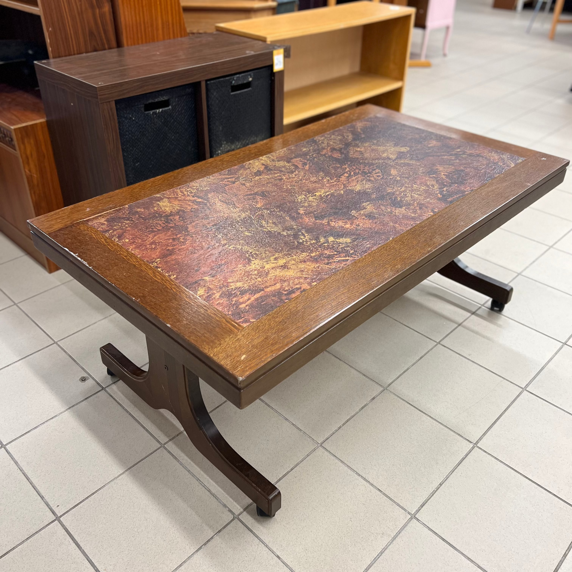 Svetainės stalas su raštuotu stalviršiu